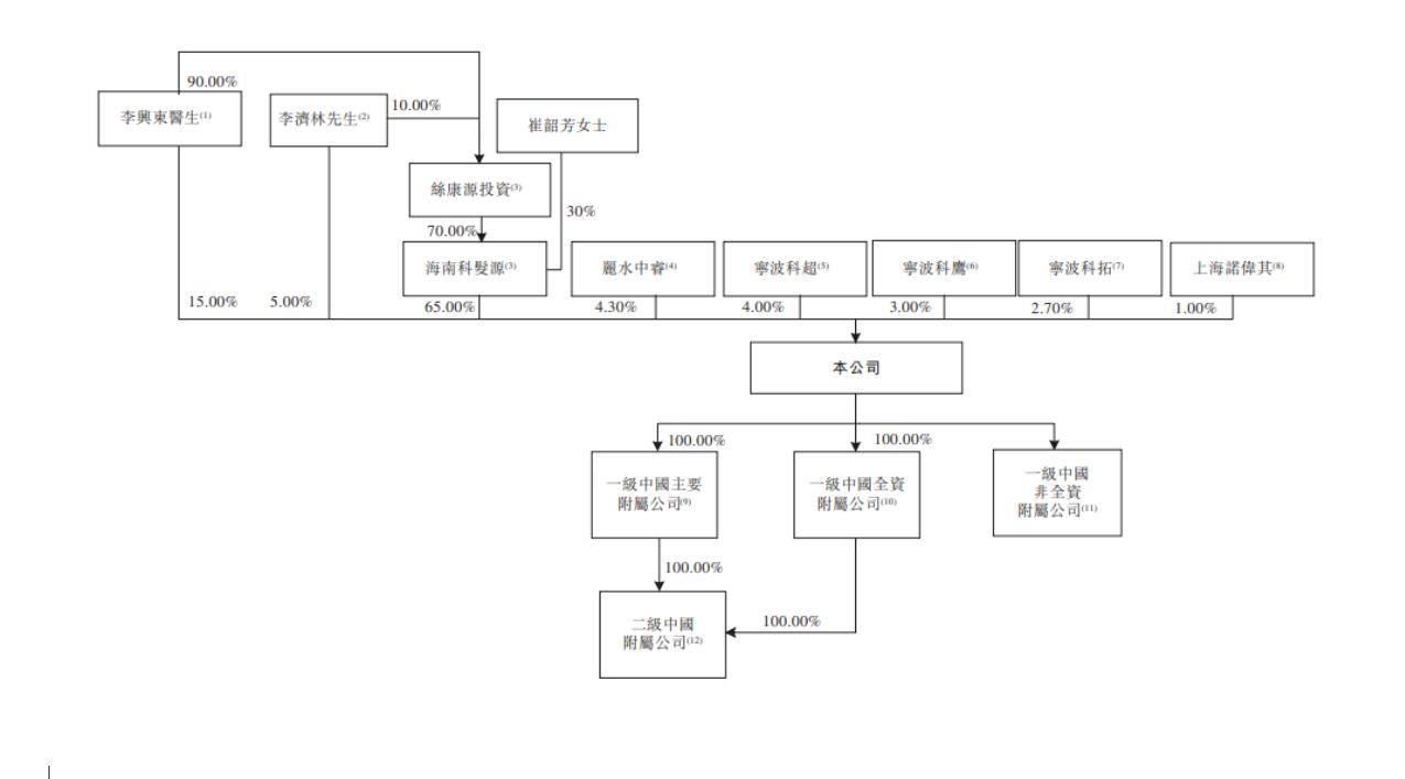 李興東醫(yī)生、崔韶芳女士、李濟(jì)林先生、海南科發(fā)源、絲康源投資、寧波科鷹及寧波科超合共持有本公司約92.00%的投票權(quán),為公司的控股股東集團(tuán)。