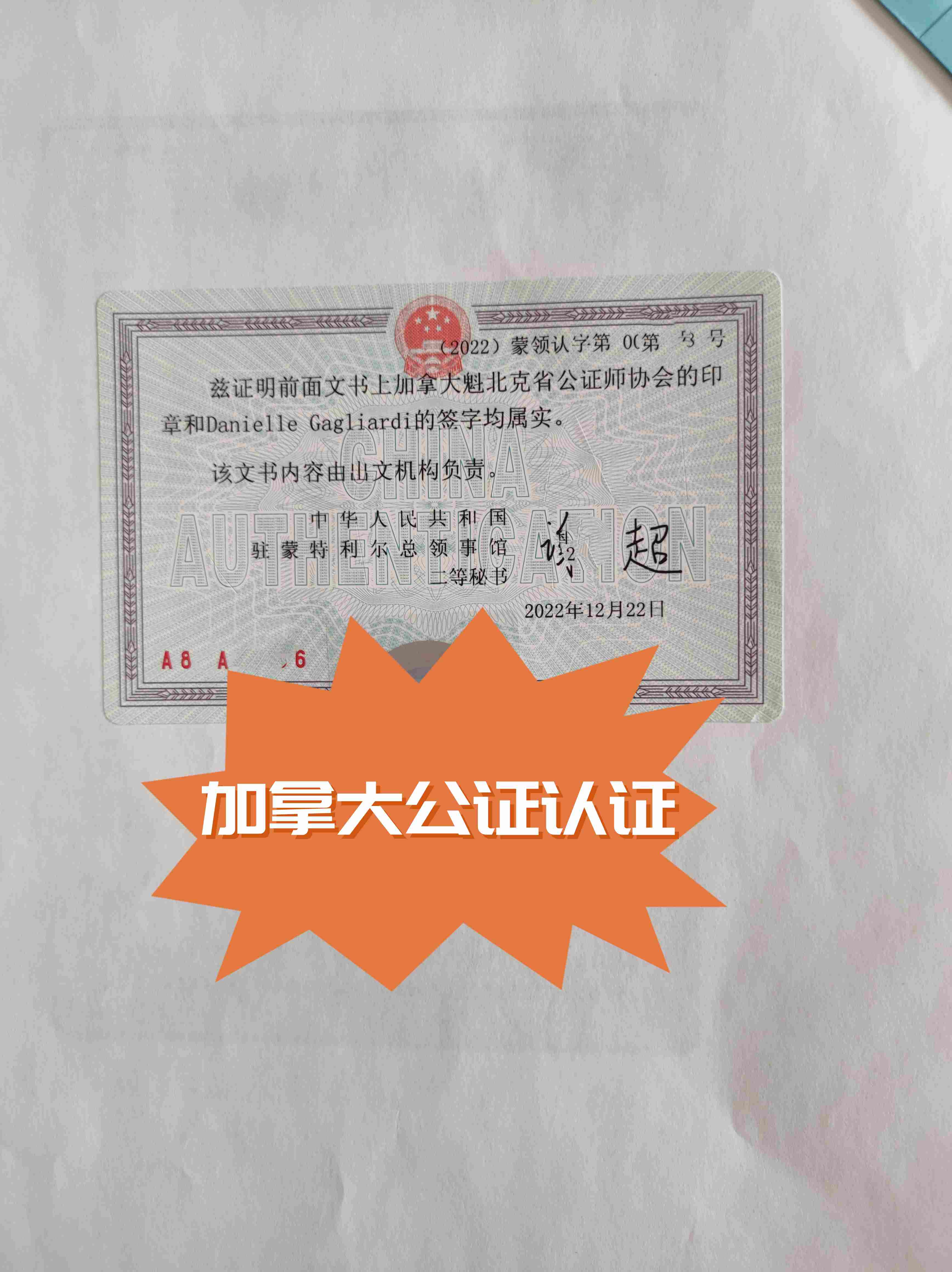 三步,中國(guó)駐加拿大使領(lǐng)館認(rèn)證。