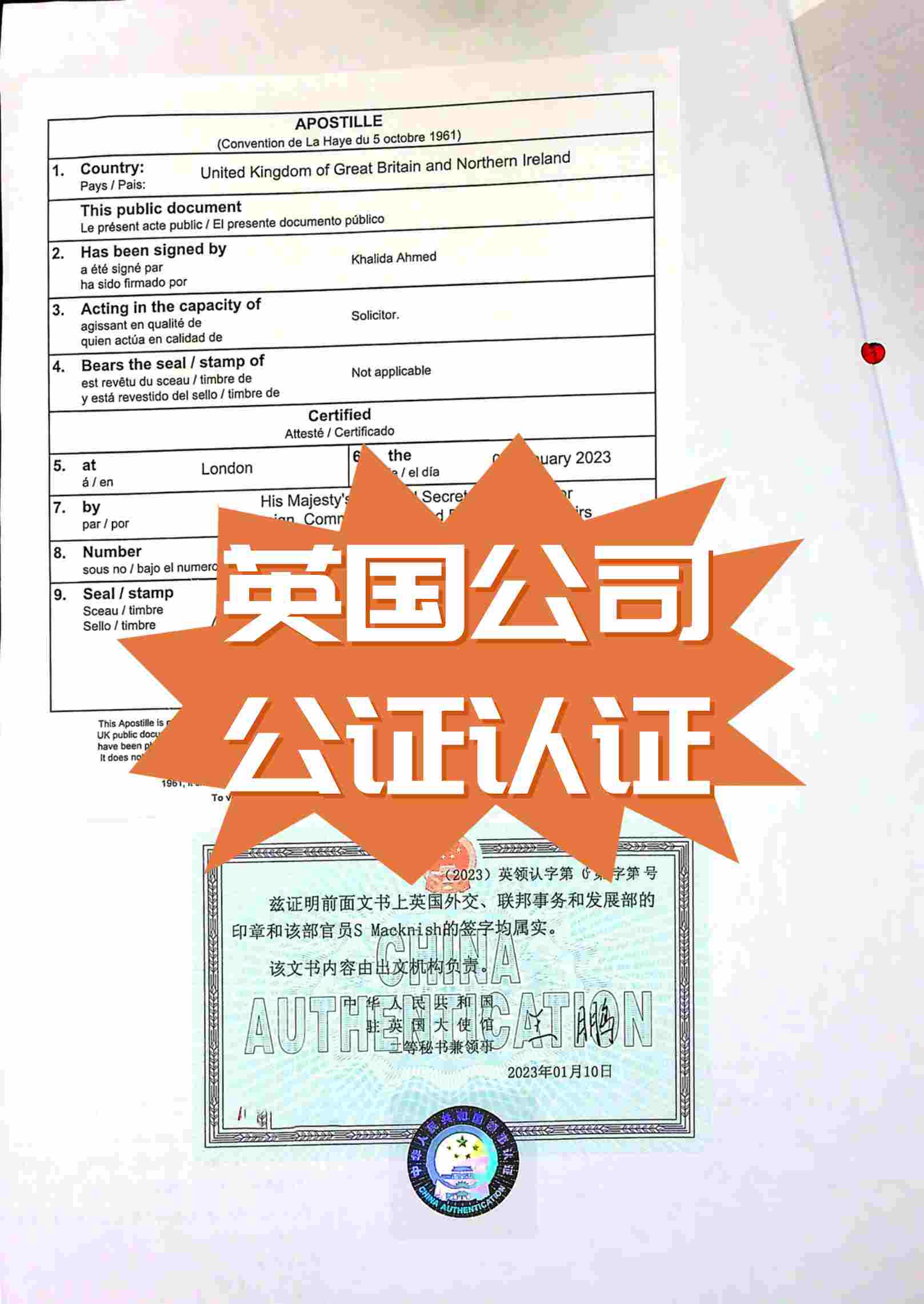 英國公司海牙認(rèn)證資料: