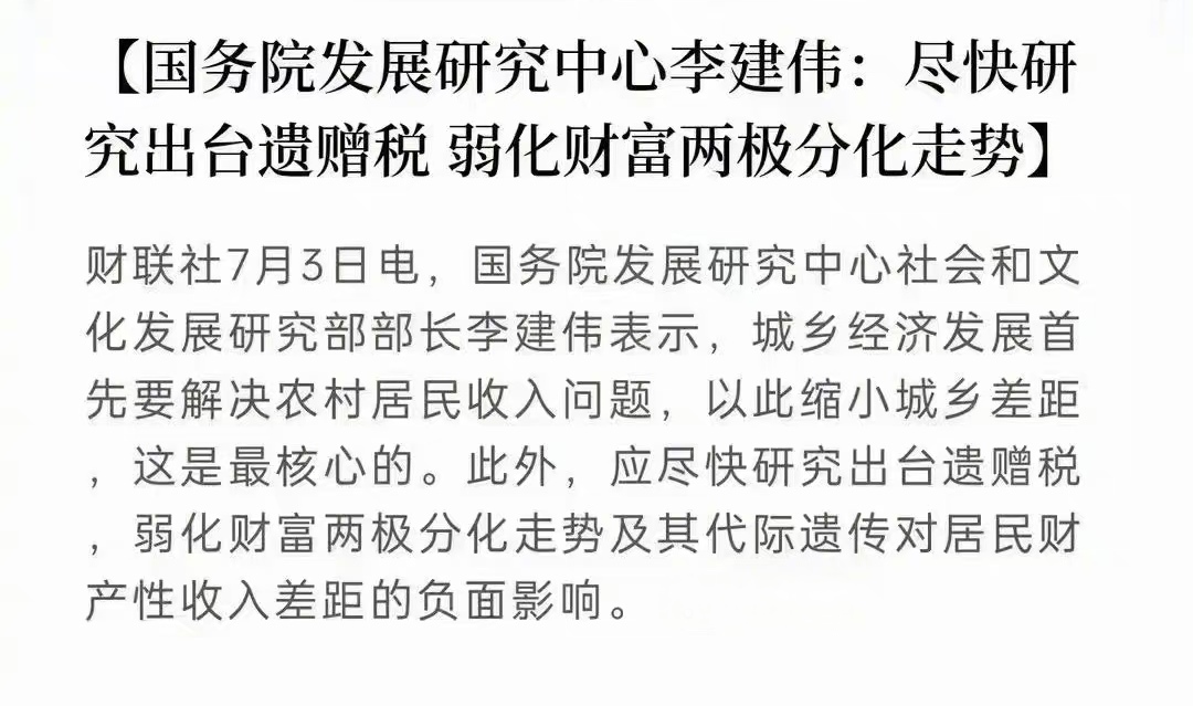 我個(gè)人看法,暫時(shí)不太適宜出臺(tái)任何增稅的舉措,等到我們真的進(jìn)入到中等發(fā)達(dá)國(guó)家之列,有大量富人涌現(xiàn)的時(shí)候,再來(lái)討論不遲,現(xiàn)在還在奮斗爬坡階段,鼓勁干勁為主。