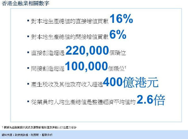 6. 香港是國(guó)際知名的主要金融中心,經(jīng)濟(jì)及營(yíng)商環(huán)境均具備優(yōu)厚競(jìng)爭(zhēng)力。香港金融服務(wù)業(yè)在多個(gè)領(lǐng)域一直表現(xiàn)卓著,享譽(yù)全球,規(guī)模亦居于世界前列,例如香港擁有全亞洲最大的資產(chǎn)管理市場(chǎng),以及全球最大的離岸人民幣資金池,而香港交易所的首次公開(kāi)招股集資額于二零零九年至二零一一年更高踞全球榜首。香港能夠取得如此卓越的成就,有賴國(guó)際級(jí)商業(yè)基建設(shè)施,健全的監(jiān)管制度,以及得天獨(dú)厚的市場(chǎng)機(jī)遇。