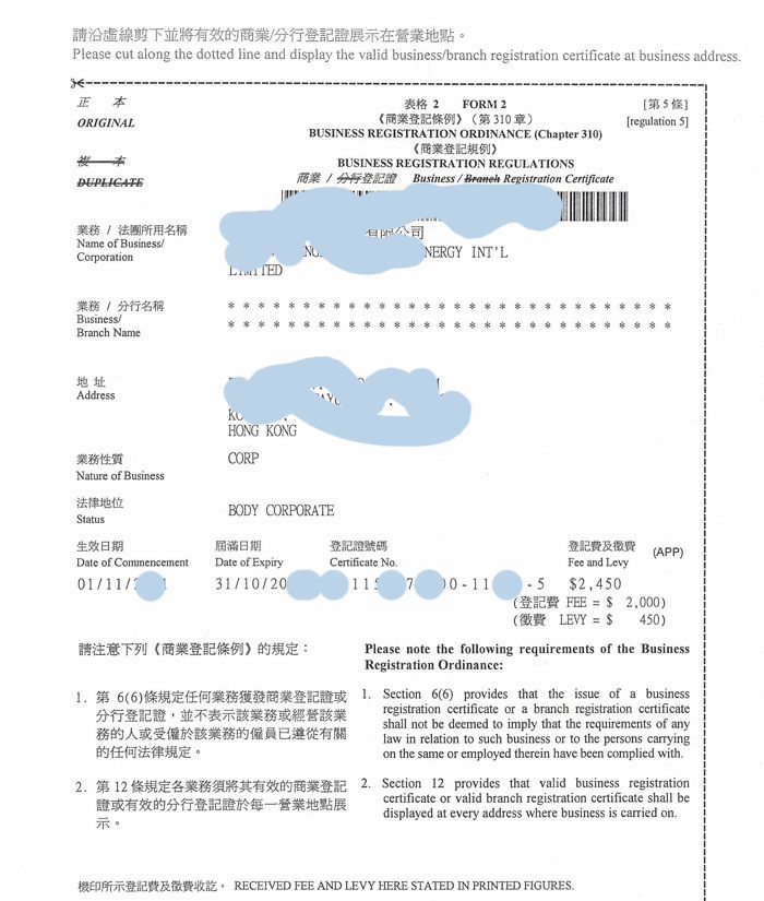 香港的企業(yè)營業(yè)執(zhí)照是什么樣的?