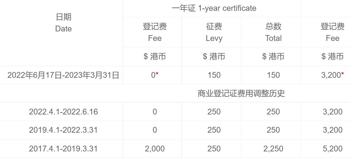 這是最近的香港商業(yè)登記證收費(fèi)表,4月正式下降2000港幣:答