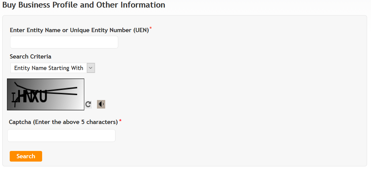 3、輸入您要查詢(xún)的新加坡公司名稱(chēng)或公司唯一的編號(hào)和驗(yàn)證碼,點(diǎn)擊Search后,繼續(xù)選擇Buy information并點(diǎn)擊,登錄singpass,新加坡人或有準(zhǔn)證的人可以登陸。