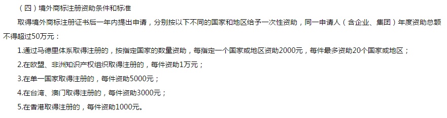 4、在臺灣、澳門取得注冊的,每件資助3,000元;