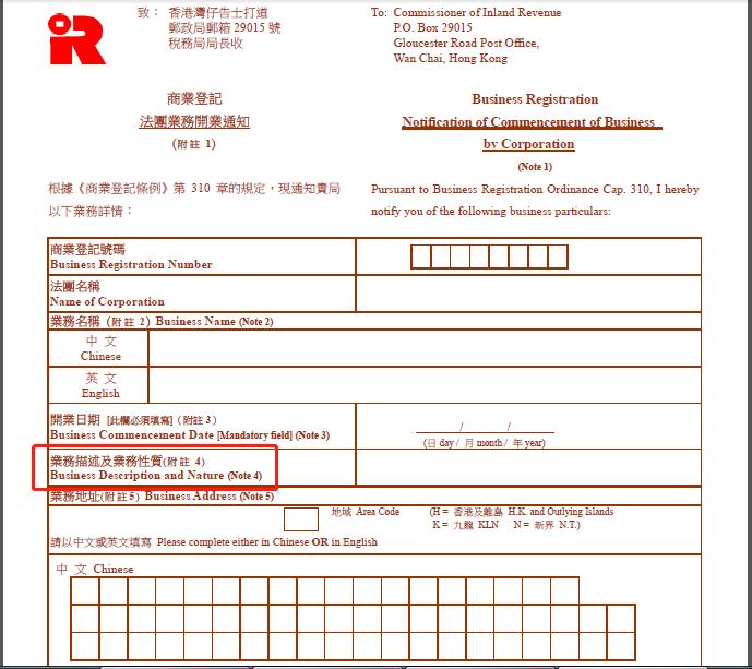 香港公司證件——商證登記證中的業(yè)務性質(zhì)項目,平常表述為“CORP”,意思是還沒有規(guī)定具體的業(yè)務范圍。如已開業(yè)經(jīng)營,需要變更為實際發(fā)生的業(yè)務。