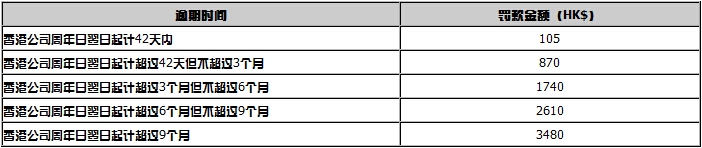 香港公司年審逾期(超期)將會被罰款: