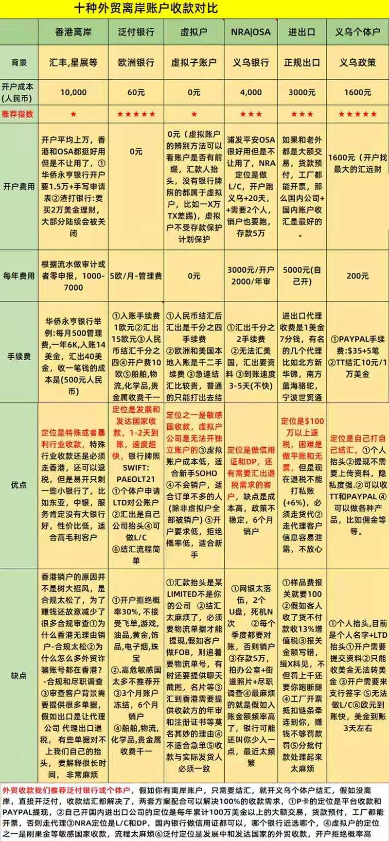 每種收款方式的特點和缺點,沒有完美的銀行,只有最好的配合,我認為首推泛付,配合稠州基本滿足100%需求。