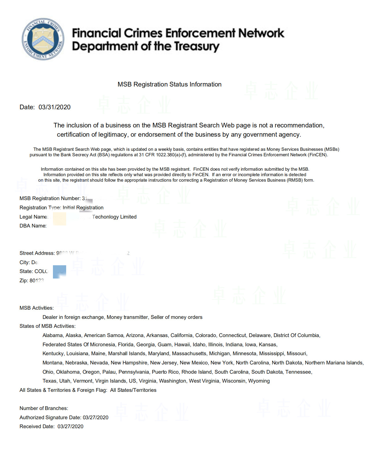 3.向美國(guó)財(cái)政部遞交 MSB 牌照的申請(qǐng)