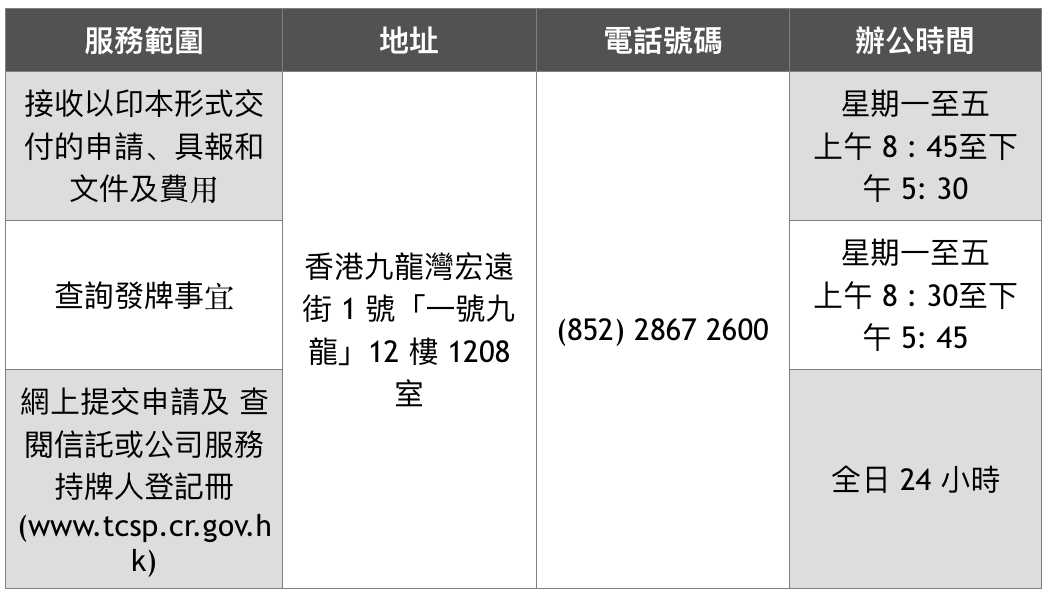 信托及公司服務(wù)提供者注冊辦事處(一號九龍)