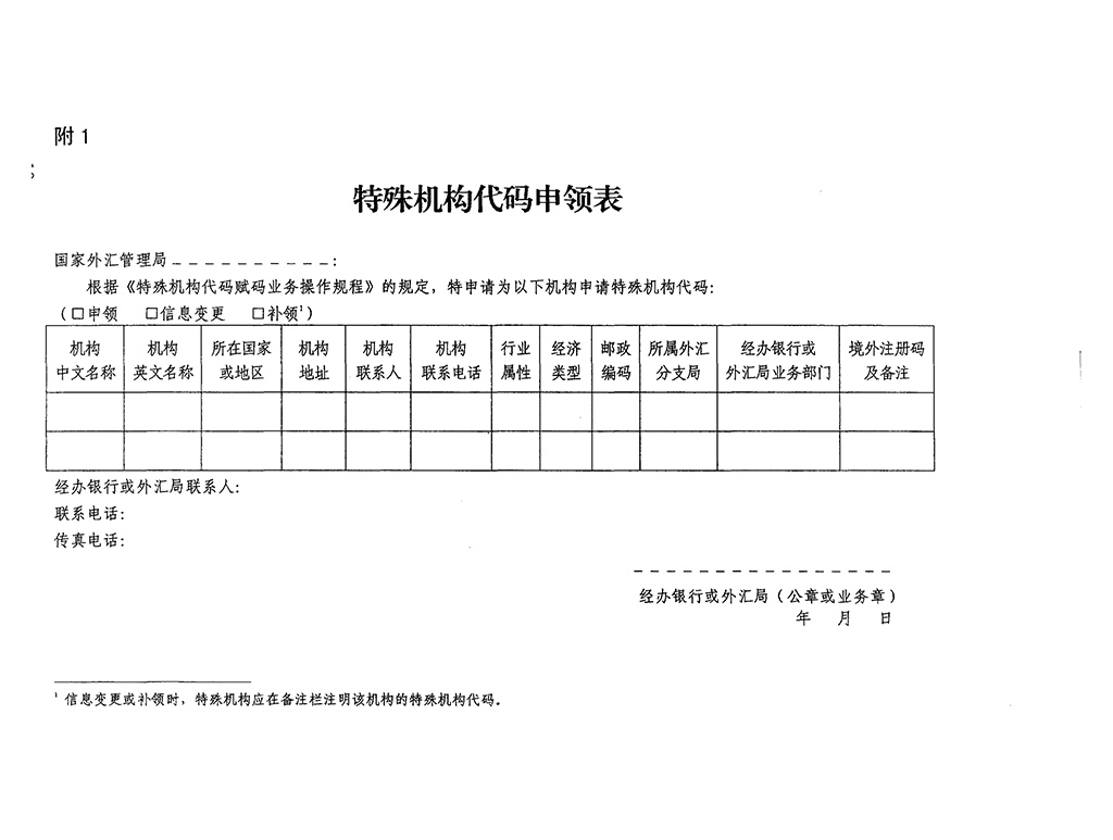 - 《特殊機(jī)構(gòu)代碼申請表》。