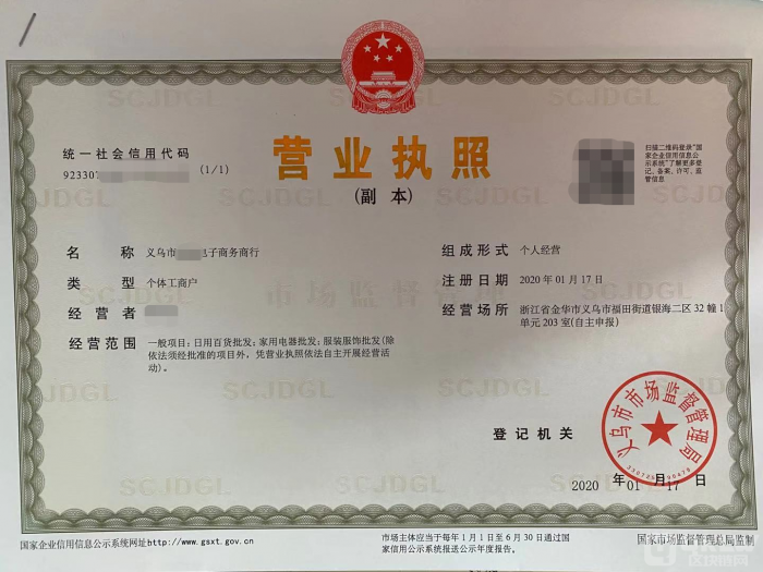3.?個(gè)體戶(hù)注冊(cè)地址:義烏本地地址,(代理公司可以提供);