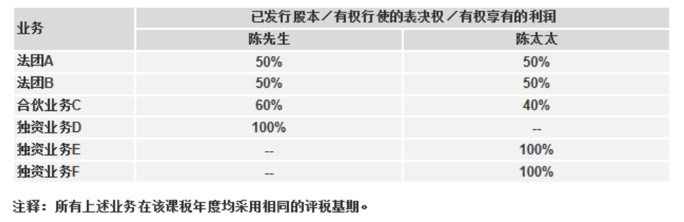陳先生與其配偶擁有以下業(yè)務(wù):