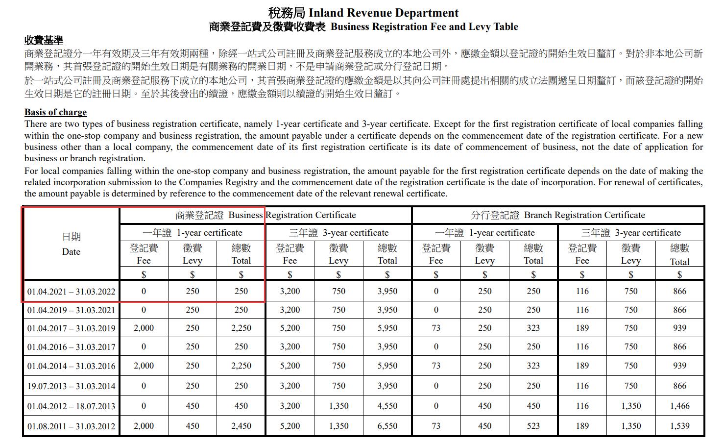 寬免商業(yè)登記費(fèi)一年 [2021 年 4 月 1 日至 2022 年 3 月 31 日]