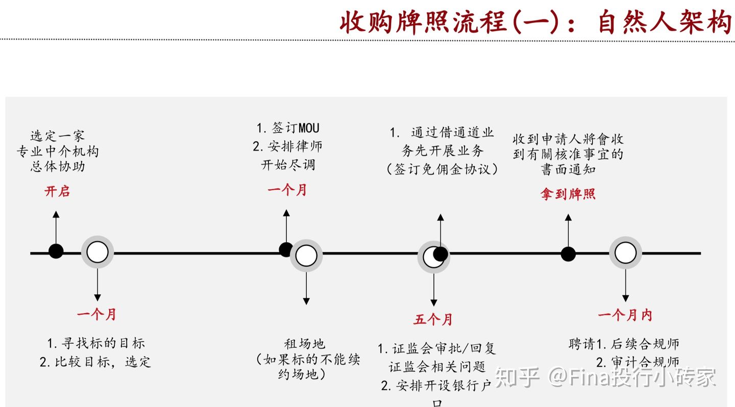 除了申請(qǐng),收購(gòu)成為入場(chǎng)港市證券公司最普遍最快捷最簡(jiǎn)單粗暴的方法。最快一個(gè)月即可完成整個(gè)變更及SFC備案。當(dāng)然,找對(duì)人真的真的很重要,否則花了冤枉錢不說,還容易導(dǎo)致不可逆的結(jié)果,直接影響收購(gòu)和備案成功的概率。