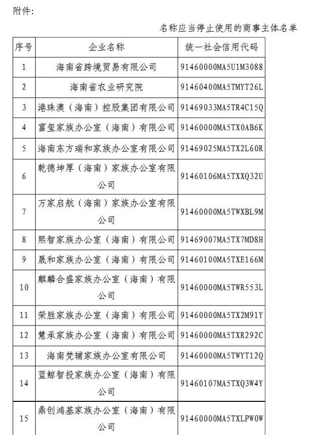 公司名稱中含有家族辦公室的要注意了,海南有301家“家族辦公室”企業(yè)名稱被停止使用