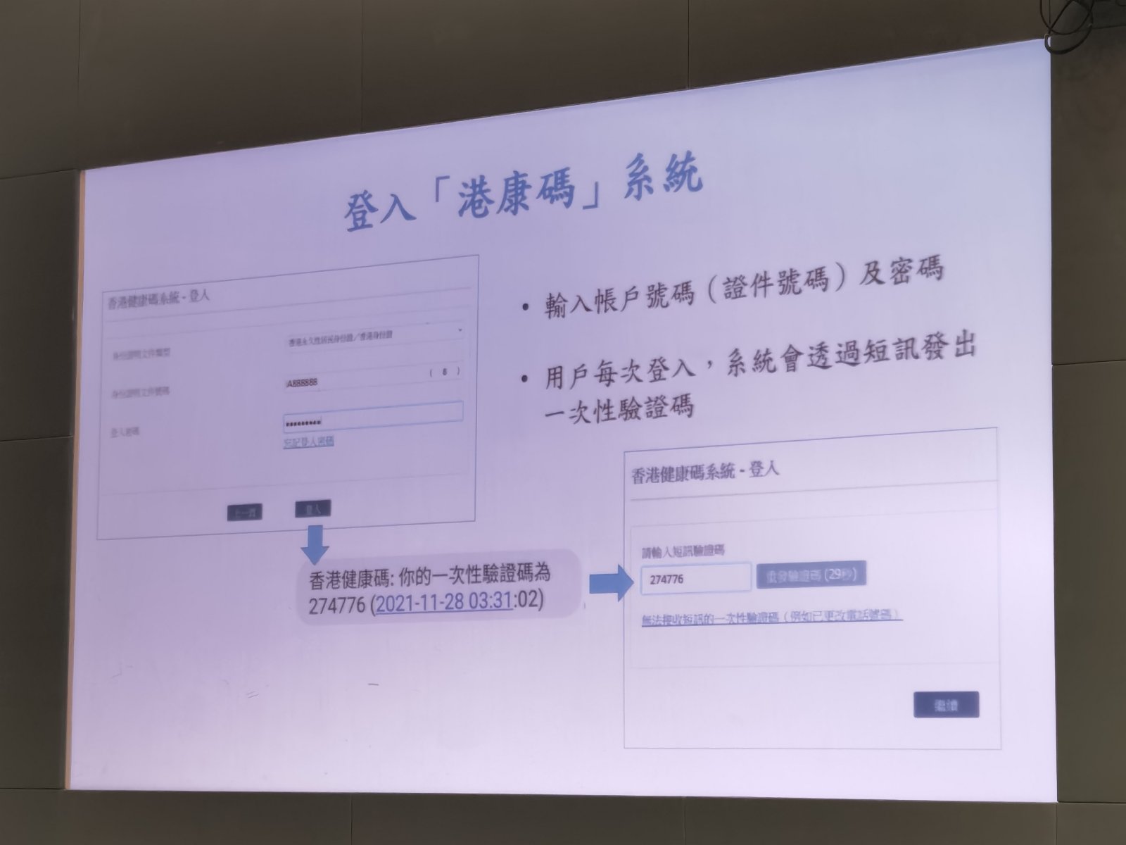啟動賬戶后系統(tǒng)會提示用戶檢查登記電話號碼是否正確。 其后每次登入會發(fā)出短訊到登記電話號碼核實身份。 用戶登入港康碼系統(tǒng)時,須輸入賬戶號碼(證件號碼)及密碼;用戶每次登錄,系統(tǒng)會透過短訊發(fā)出一次性驗證碼。