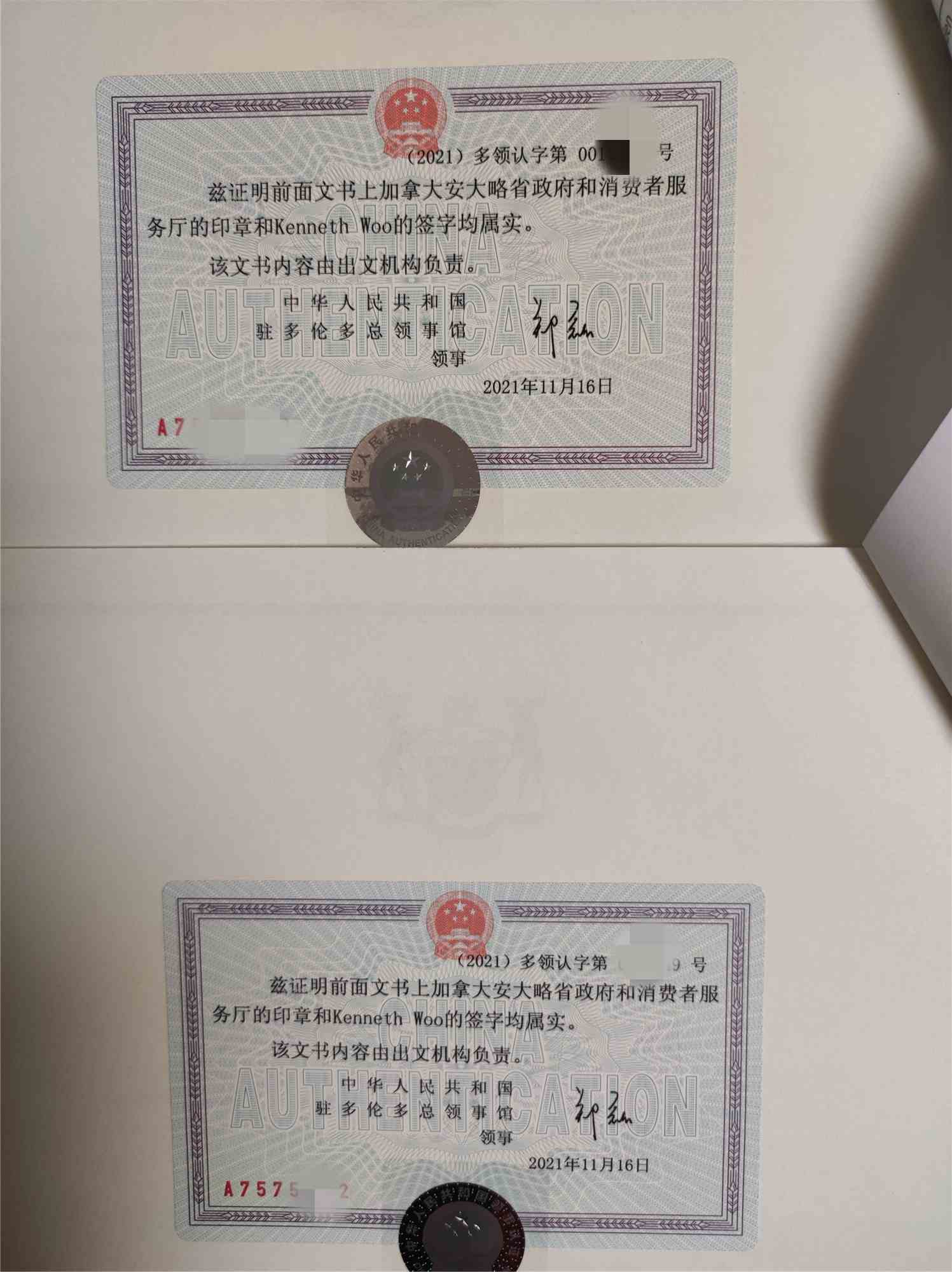 3、之后把文件送完中國駐加拿大使館辦理領(lǐng)事認(rèn)證
