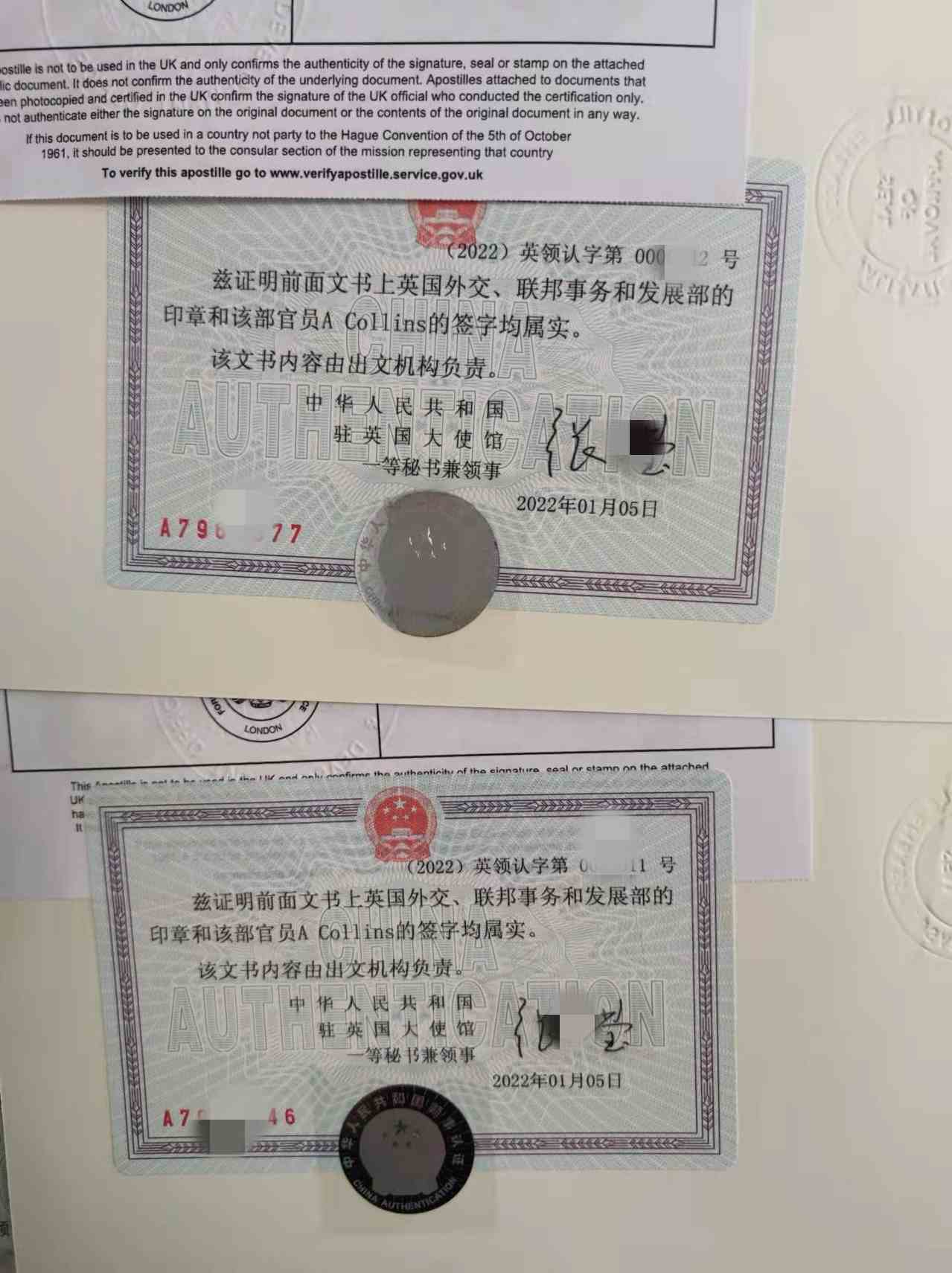 2.英國(guó)外交部對(duì)文件進(jìn)行認(rèn)證