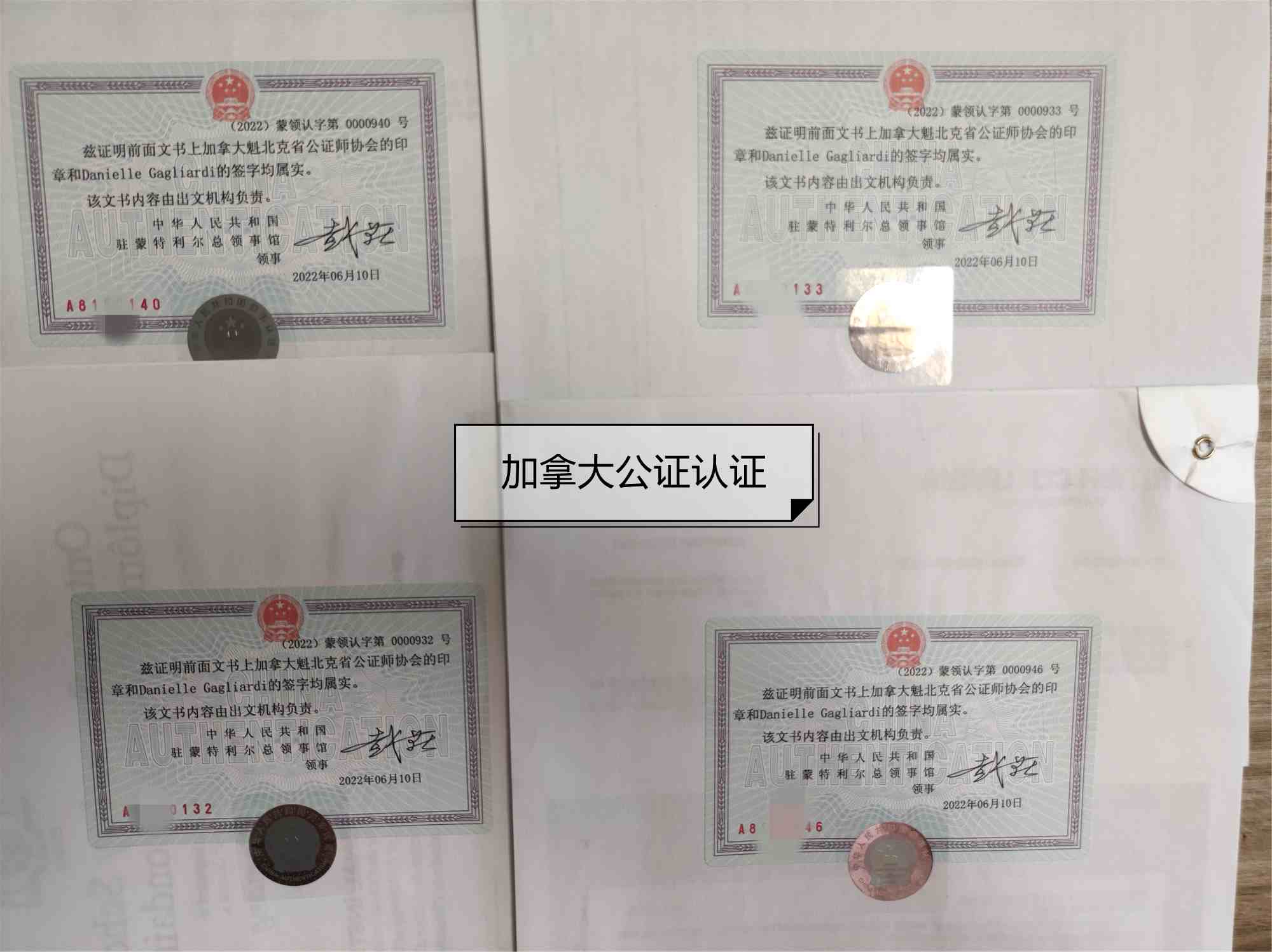 加拿大認證流程:國際公證人公證,加拿大省政府認證,中國駐加拿大使館認證。