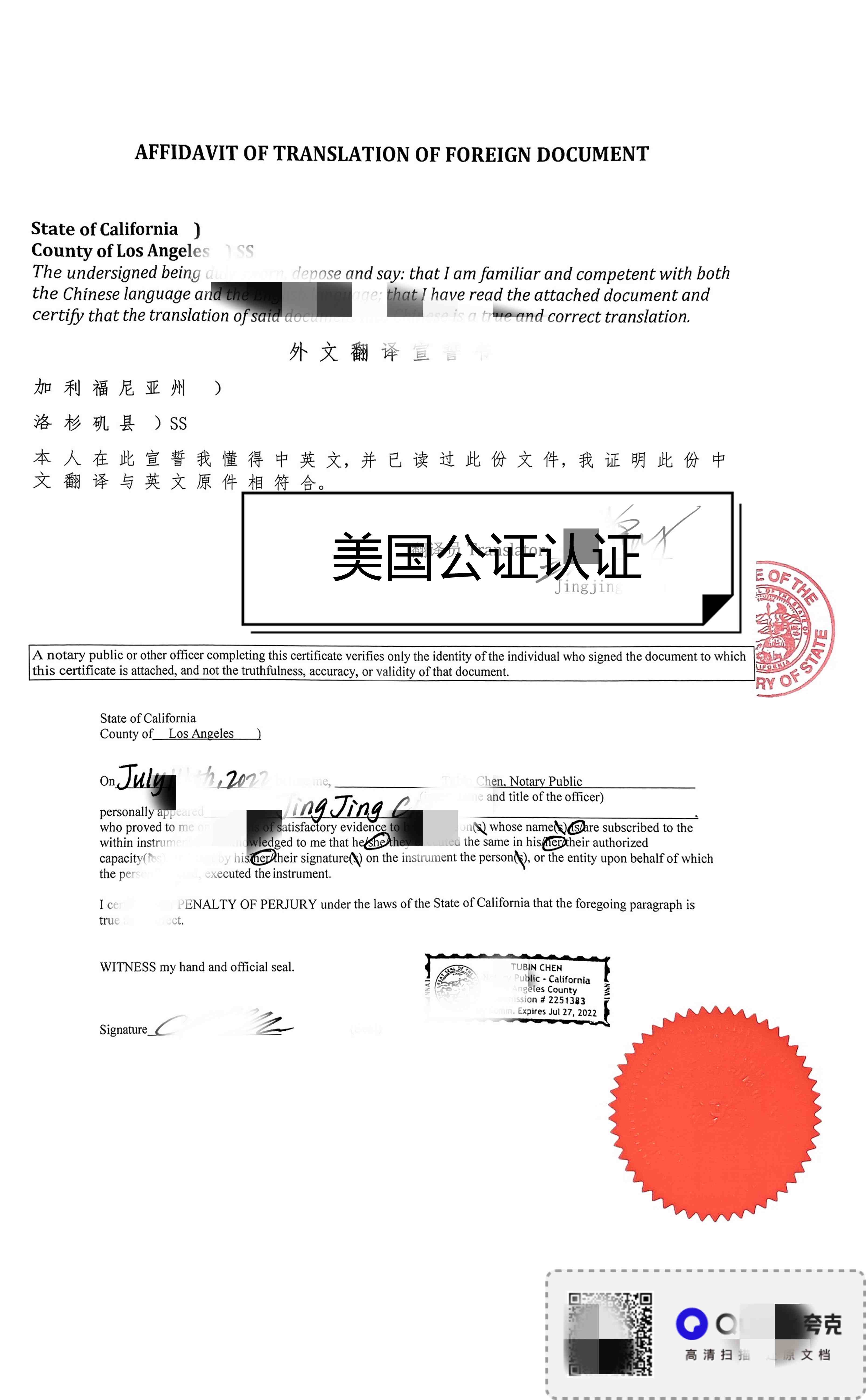 以上文件需要在美國辦理公證及中國領事館認證,之后在中國使用前還需提供中文譯本。