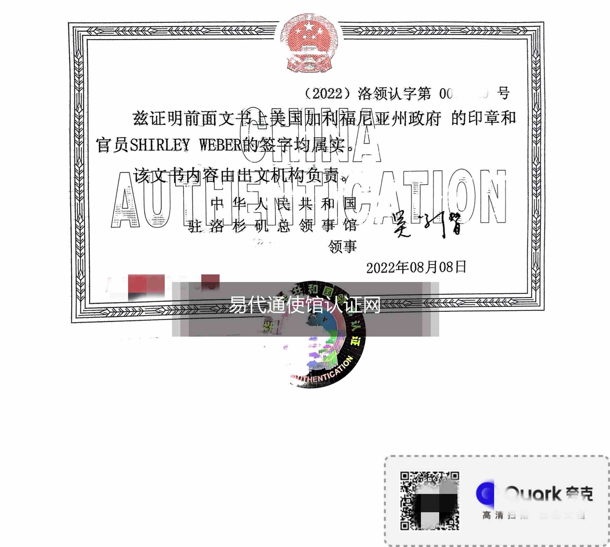3、然后把美國(guó)州務(wù)卿認(rèn)證之后的文件送往中國(guó)駐美國(guó)大使館進(jìn)行認(rèn)證