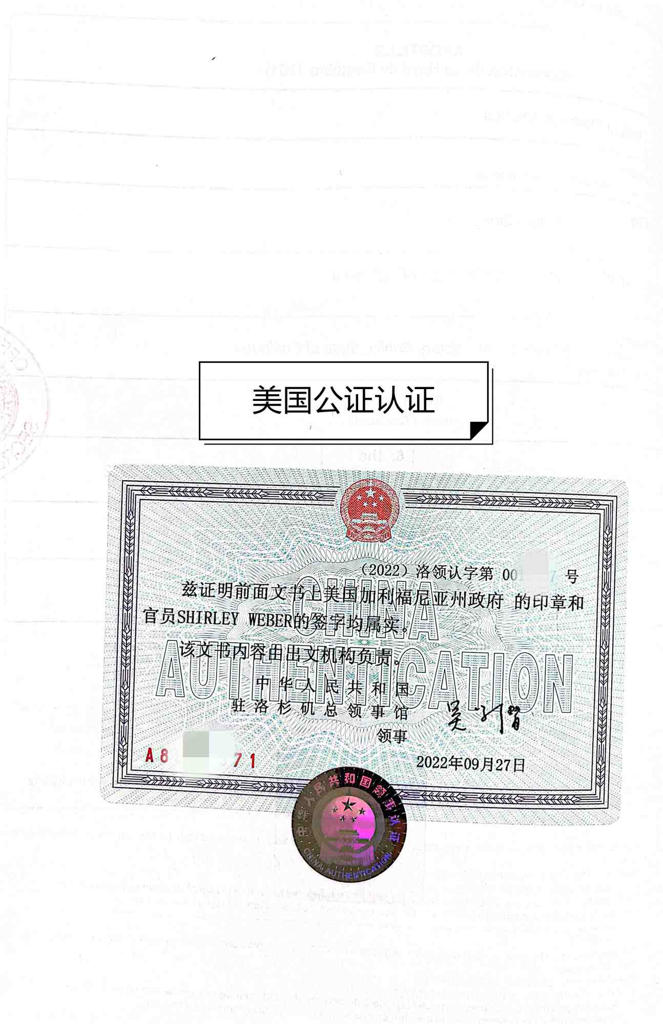 2、其次把公證好之后的文件交由美國(guó)州務(wù)卿進(jìn)行海牙認(rèn)證