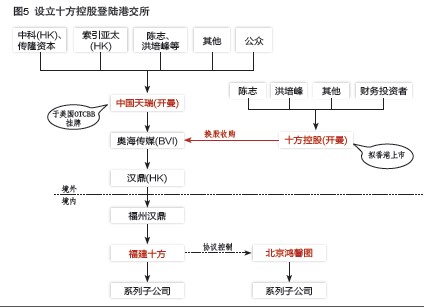 十方控股的紅籌架構(gòu)搭建,是實(shí)際控制人通過境外離岸公司,在十號文生效之后于境內(nèi)設(shè)立了一家外商獨(dú)資企業(yè),然后利用這家外商獨(dú)資企業(yè)收購了一家股權(quán)意義上有外資成分但法律意義上是純內(nèi)資企業(yè)的公司。其重組方式是否與十號文沖突,業(yè)界還存爭議。 文/蘇龍飛 朱銳 一家在國內(nèi)經(jīng)營二、三線城市報刊廣告業(yè)務(wù)的公司—十方控股—實(shí)現(xiàn)了在香港的上市。不過在資訊非常發(fā)達(dá)的當(dāng)今,通過公開渠道能了解到這家公司的信息不能不說少得可憐。 有人曾將分眾傳媒的業(yè)務(wù)模式概括為“談樓宇—裝屏幕—賣廣告”,如果套用這類說法的話,十方控股的業(yè)務(wù)模式可以描述為“談代理—賣廣告—做配套”:首先,與媒體談定廣告代理合作;其次,將廣告位向廣告商出售;最后,向廣告商提供廣告設(shè)計、版面、內(nèi)容規(guī)劃及活動籌辦等增值服務(wù)或向報刊提供印刷服務(wù)。 十方控股的業(yè)務(wù)可以分為三個步驟,而每個步驟則由不同的經(jīng)營主體來負(fù)責(zé),即“福建十方”和“北京鴻馨圖”,而要了解十方控股的背景,就不得不從這兩家不論在股權(quán)還是業(yè)務(wù)上最初都沒有任何關(guān)系的企業(yè)談起。 非同一控制下的經(jīng)營實(shí)體 福建十方的主要控制人是陳志,1966年生人,早年是福州市公務(wù)員,2003年下海從商。福建十方則實(shí)際成立于2000年,彼時主要由陳志的妻子鄭守齡,以及其兄鄭柏齡持股,代理《海峽都市報》和《福州日報》的廣告業(yè)務(wù),2003年陳志辭去公職,經(jīng)過幾次轉(zhuǎn)股,最后與其母親王寶珠共同持有福建十方的全部股份。2005年,陳志單方對福建十方增資,持股比例達(dá)到93.8%,也即在此期間,福建十方開始開展全面合作業(yè)務(wù),與《東南快報》、《生活新報》簽訂了全面合作合約。2006年,出于發(fā)展的需要,陳志為福建十方引進(jìn)了日資股東,日本上市企業(yè)Sun japan corporation的中國子公司北京聯(lián)迪恒星,該企業(yè)獲得了福建十方51%的股權(quán),而一年半以后這部分股權(quán)又轉(zhuǎn)讓至日本另一家上市企業(yè)Index holdings 的間接中國子公司深圳天訊(如圖1)。除了股權(quán)的變化,在此期間,福建十方代理的報刊也由之前的兩三家擴(kuò)展至10余家。 在福建十方發(fā)展的同時,北京鴻馨圖也在逐漸發(fā)展。這家公司成立于2004年,最初由兩個獨(dú)立第三方持有,2004年則轉(zhuǎn)讓至以洪培峰(由其親屬強(qiáng)亦彬等代持)等人名下(如圖2)。洪培峰1967年出生,1991年開始涉足房地產(chǎn)經(jīng)營,2001年又創(chuàng)辦了主營廣告業(yè)務(wù)的廈門遠(yuǎn)通傳播有限公司。由于印刷、ICP服務(wù)不能由外資經(jīng)營,所以無法在股權(quán)上并到上市主體內(nèi),而只能用“協(xié)議控制”,所以在十方控股的架構(gòu)中,北京鴻馨圖主要負(fù)責(zé)出版物的發(fā)行咨詢與管理、印刷和電子發(fā)行業(yè)務(wù),最終和福建十方簽訂系列架構(gòu)協(xié)議。 上市背后的資本推手 兩家在股權(quán)上最初并無關(guān)系、主要控制人又沒有親屬關(guān)系的企業(yè)是如何合并到一起并打包上市的呢?反復(fù)研讀十方控股的招股說明書不難發(fā)現(xiàn),與之前案例不同,十方控股的上市背后更多是投資公司和財務(wù)顧問的影子,或者可以說,十方控股的上市是一次財務(wù)顧問主導(dǎo)的資本運(yùn)作行為。 傳隆資本或許就是十方控股上市的主要幕后推手。根據(jù)其官網(wǎng)介紹,傳隆資本是一家私營專業(yè)金融機(jī)構(gòu),主要投資于成長型企業(yè),并為該類企業(yè)的境外上市或收購兼并提供顧問服務(wù)。具體來說,傳隆資本主要做的是將中國企業(yè)以SPAC方式到海外上市,即在美國OTCBB市場上先成立一家空殼公司,并以募集到的資金在限定時間內(nèi)收購實(shí)體企業(yè),繼而轉(zhuǎn)板到主板上市。 截止2011年底,傳隆資本總共成立了三家現(xiàn)金并購上市公司,其中中國天瑞收購了福建十方的主要控股公司奧海傳媒,但顯然他們并不只是等待中國天瑞的轉(zhuǎn)板,而是將奧海傳媒在香港上市,打造出了十方控股。 十方控股的紅籌上市可以用一波三折來形容:首先要考慮的是如何在商務(wù)部《關(guān)于外購?fù)顿Y者并購境內(nèi)企業(yè)的規(guī)定》(2006年第10號,俗稱“十號文”)背景下完成跨境重組,并將兩家不同實(shí)際控制人擁有的非關(guān)聯(lián)企業(yè)打包到一起;其次在資本的忽悠之下,選擇了先借殼登陸OTCBB再轉(zhuǎn)板納斯達(dá)克的上市路徑;發(fā)現(xiàn)此路不通之后更改方案轉(zhuǎn)道香港,方才完成最后的IPO。 十號文背景下的跨境重組 如前文圖1、圖2所示,福建十方與北京鴻馨圖是兩家相互獨(dú)立的企業(yè),其實(shí)際控制人分別為陳志、洪培峰。正是在財務(wù)顧問的撮合及參謀之下,2007年各參與方共同醞釀出了“將兩家打包到海外上市”的方案。 2007年5月18日,陳志、洪培峰等人在境外搭建了如圖3左上角所示的離岸架構(gòu),共同持有奧海傳媒(BVI),后者再全資持有漢鼎(HK)。 2007年6月12日,福建十方實(shí)際控制人陳志首先從洪培峰手中受讓了北京鴻馨圖10%的股權(quán),從而變成北京鴻馨圖的股東之一。 2008年4月30日,漢鼎