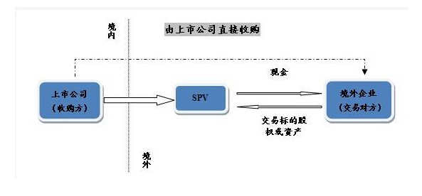 方案1的基本思路是:由上市公司直接收購或者通過設立境外子公司的方式收購境外標的資產(chǎn)。并購所需的資金一般來自上市公司的自有資金、超募資金或者銀行并購貸款。具體交易結構如下: