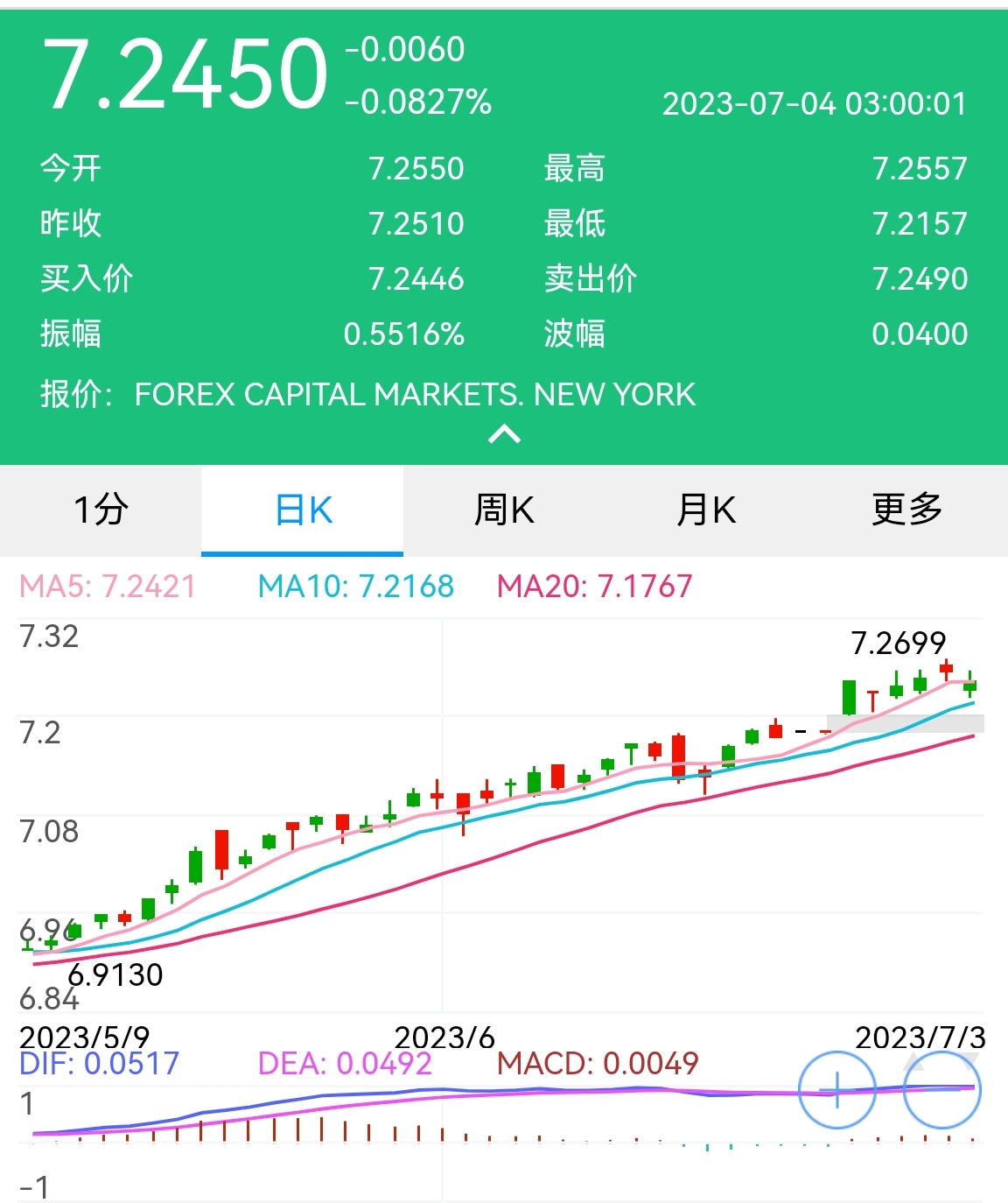 今天在岸人民幣和離岸人民幣兌美元雙雙破7了 答