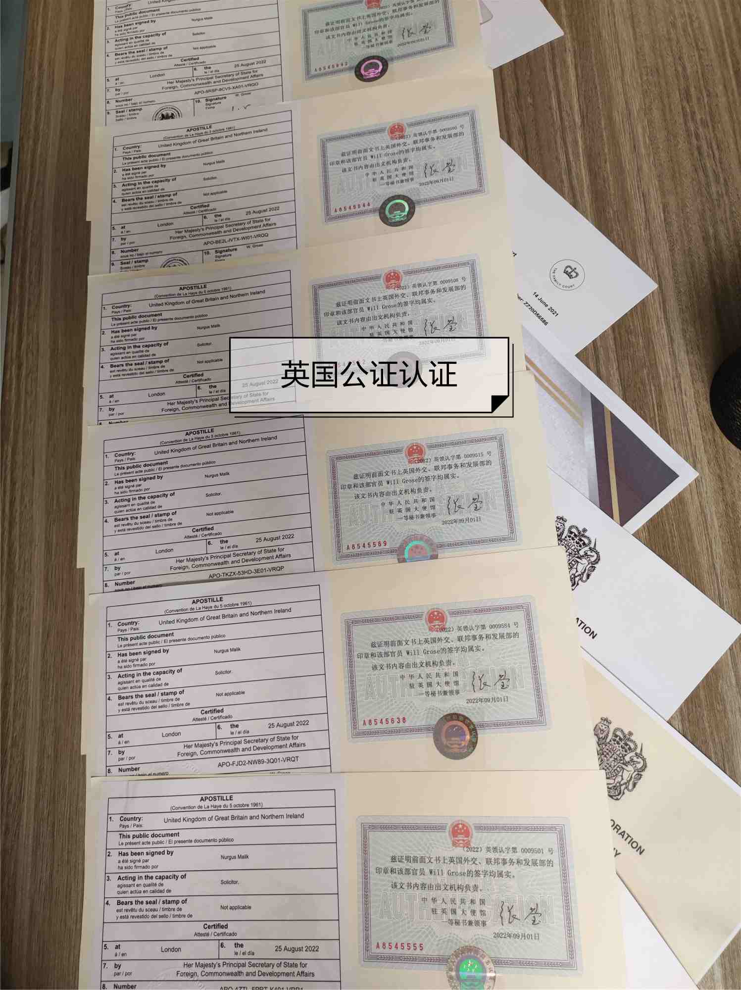 由國際公證律師或公證員公證,英國外交部認證,中國駐英國大使館認證,這三部就可以正常使用了。