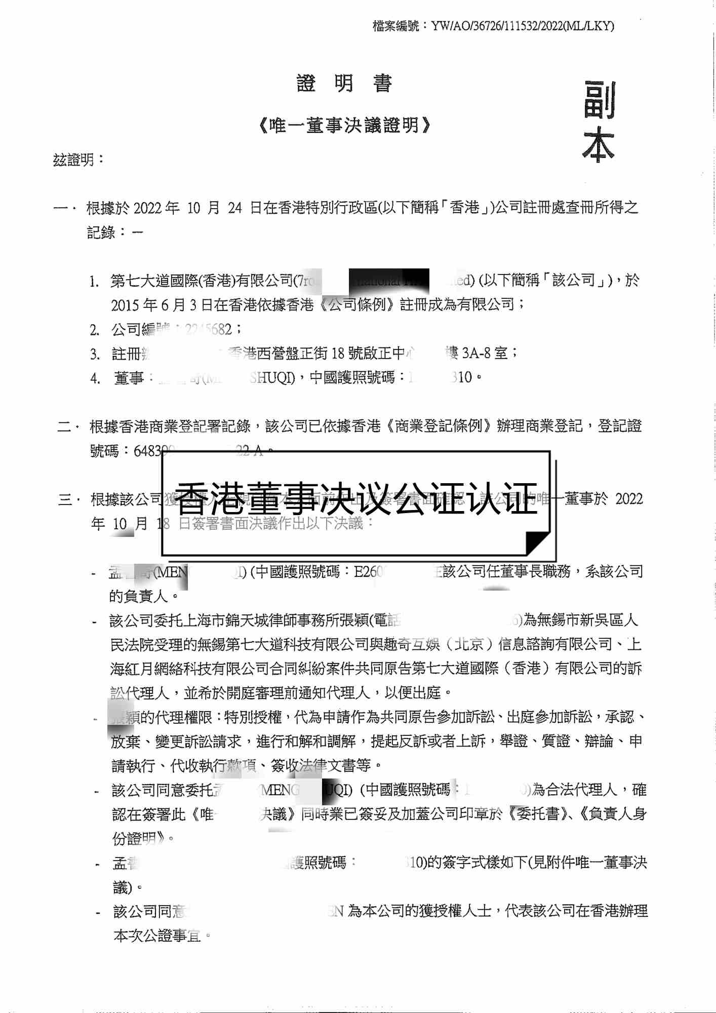 2.委托香港律師到中國(guó)法律服務(wù)(香港)有限公司加蓋轉(zhuǎn)遞章,整個(gè)認(rèn)證時(shí)長(zhǎng)為一周。