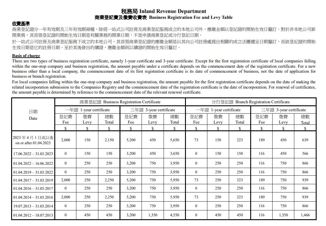 香港商業(yè)登記費用可以在香港稅局官方網(wǎng)站查詢,