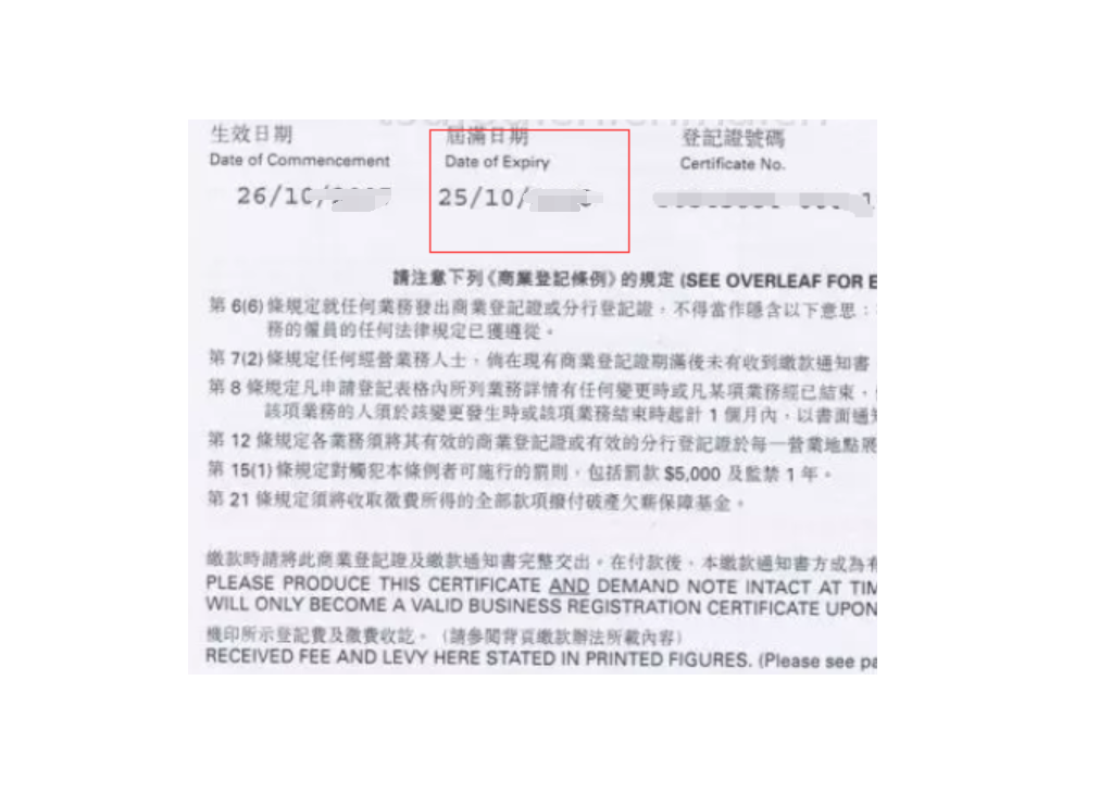 香港商業(yè)登記證號碼前面8位數(shù)字是不會變化的。答