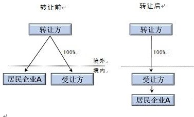 (境外—境內(nèi),此處假定是非居民企業(yè)轉(zhuǎn)讓方100%直接控股受讓居民企業(yè))