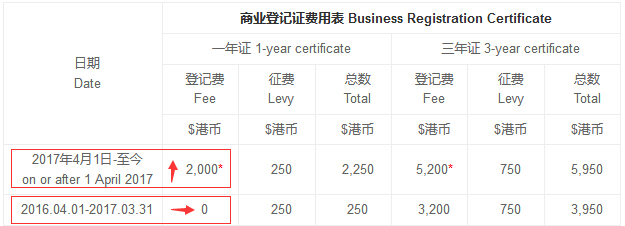 這是最近的香港商業(yè)登記證收費(fèi)表,4月正式下降2000港幣:答