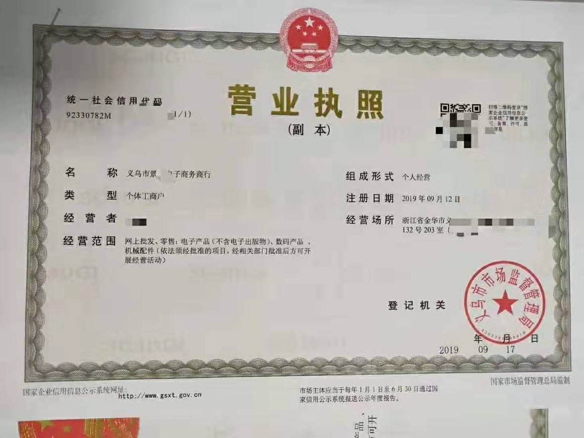 2個體戶名稱:格式(義烏市**電子商務(wù)商行)一般是工商隨機的