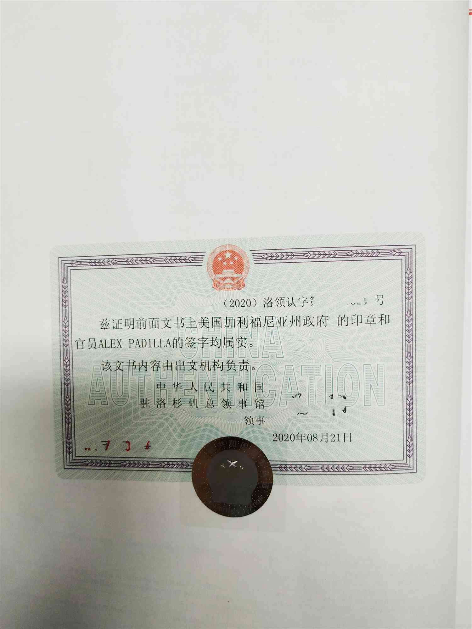 3.將州務(wù)卿認證好的文件遞交到中國駐美國使館認證。