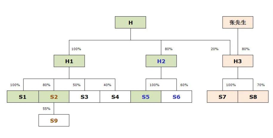 (2)法團(tuán)H擁有或控制法團(tuán)S5合計(jì)80%的已發(fā)行股本╱有權(quán)行使或支配行使法團(tuán)S5合計(jì)80%的表決權(quán)(即80% × 100%)。