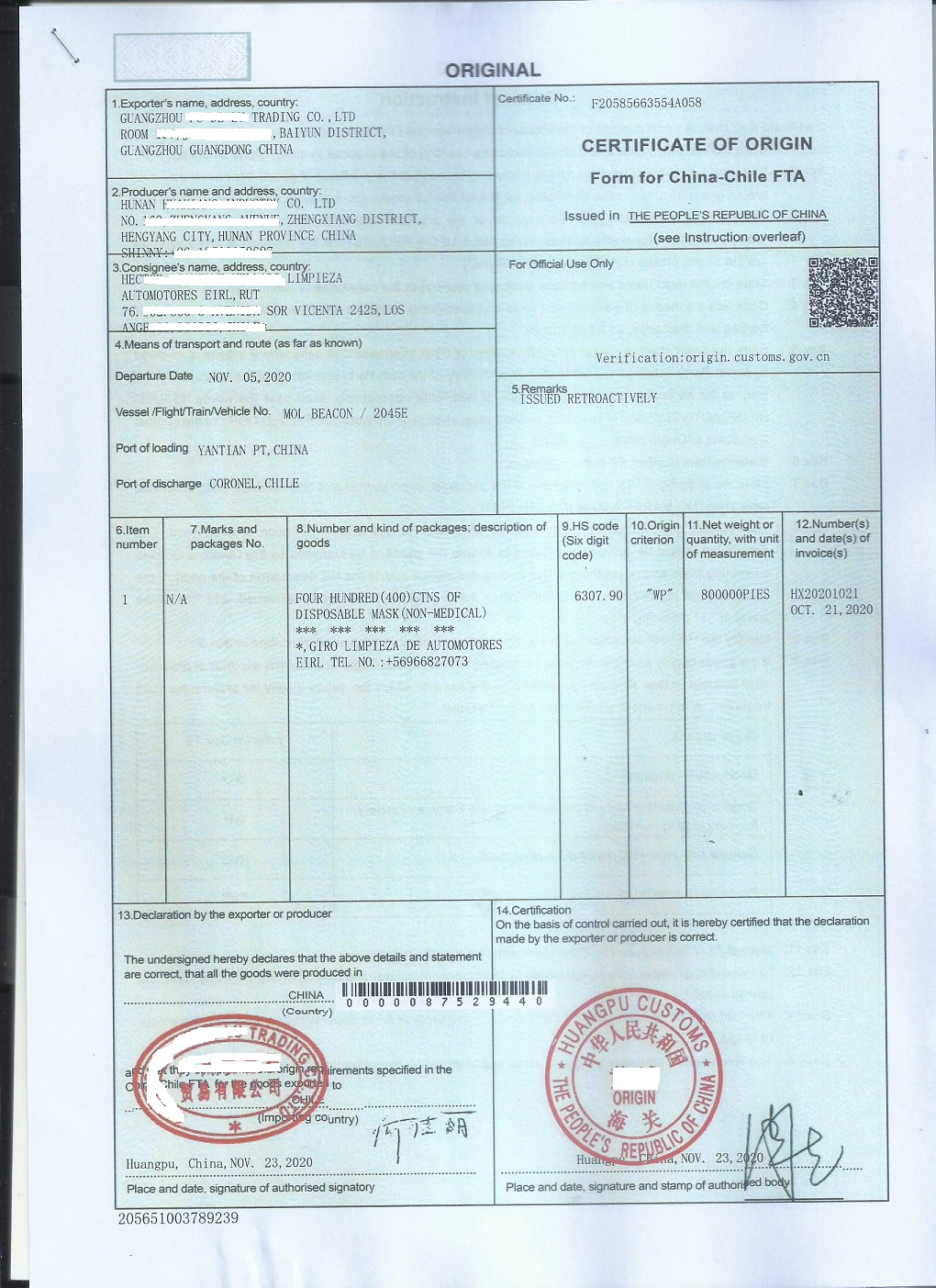 ——代辦出口智利FORM F,代辦中國-智利自由貿易區(qū)優(yōu)惠FTA原產地證