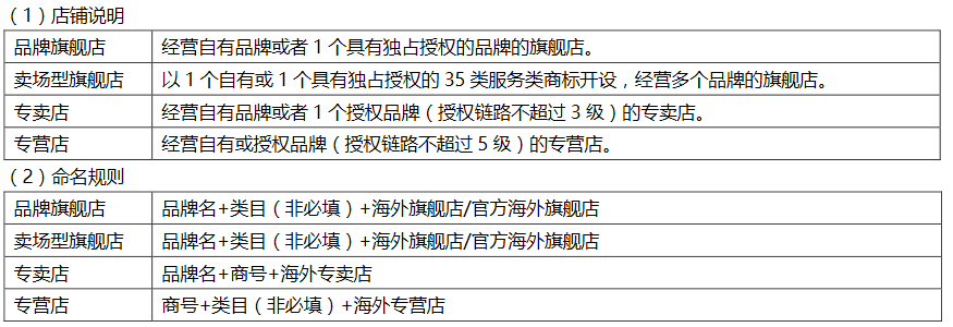 店鋪名稱需按照以下規(guī)則進行擬定。旗艦店、專賣店、專營店命名格式如下: