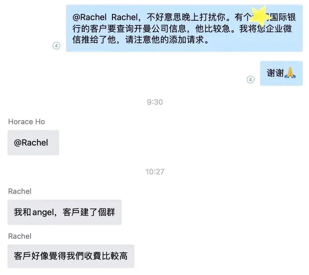 恰在前天晚上,有一境外銀行找到我們想查冊(cè)某開曼公司,并獲得經(jīng)認(rèn)證的核證副本,以核實(shí)其客戶信息。但是,一番了解下來,卻表示:“你們收費(fèi)較高?!?br />