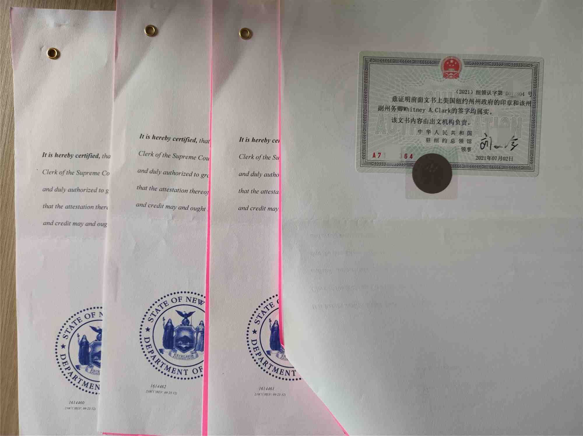 2、美國州務卿認證,州務卿認證主要是對文件上公證律師的簽字和蓋章進行核查無誤之后,放在文件上粘貼小卡片并簽字確認