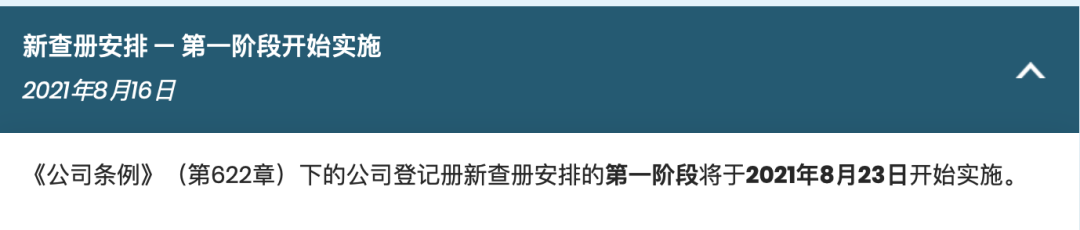 2021年8月16日,香港公司注冊(cè)處就《公司條例》下的公司登記冊(cè)新查冊(cè)安排發(fā)布最新消息稱:第一階段將于2021年8月23日開始實(shí)施。