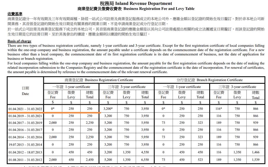 2017年4月開(kāi)始香港公司官方商業(yè)登記費(fèi)用調(diào)整到2250元一年了,不是原來(lái)的250元。答