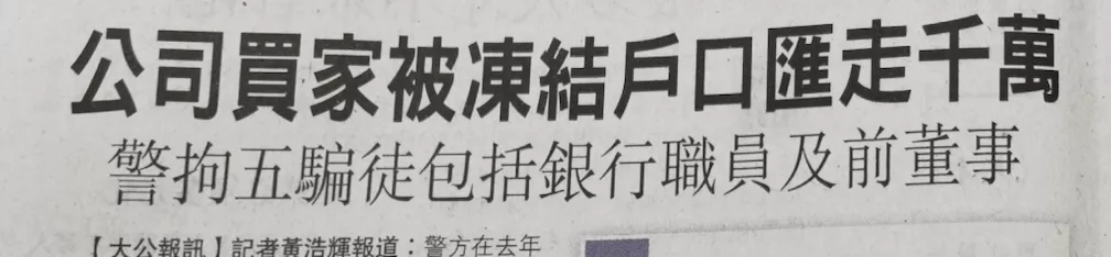 由于業(yè)務(wù)緊急,受害人在收購香港殼公司后,沒有及時(shí)跟進(jìn)銀行戶口轉(zhuǎn)名事宜,便通過原有銀行賬戶收取貨款,貨款金額高達(dá)「1400萬港元」。