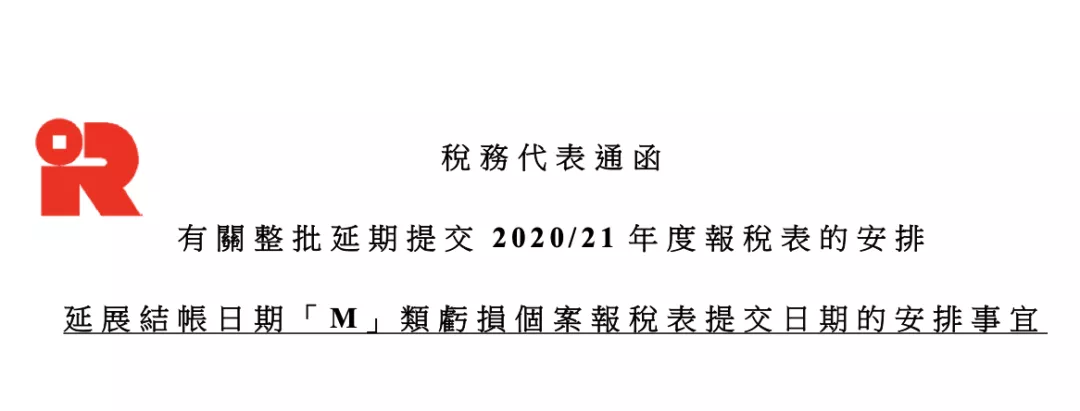 所謂結(jié)帳日期“ M ”類,是指結(jié)帳日期介乎“ 2021年 1月 1日至 2021年 3月 31日”者。根據(jù)稅務(wù)局通知,延展提交2020/21年度 “M ”類利得稅報稅表的“最后提交期由2022年1月31日延展至2022年2月28日?!?br />
