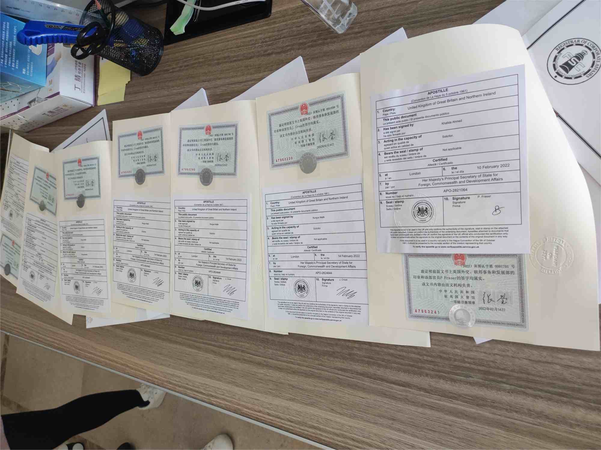 資料準(zhǔn)備好之后,接下來就將資料遞交英國公證人公證 ,外交部認(rèn)證,中駐英國使館認(rèn)證,辦理時(shí)間15個(gè)工作日,是不是很快