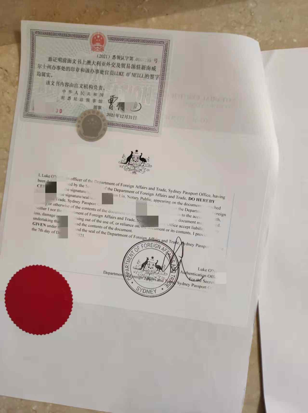 2.其次送往澳洲外交部認證