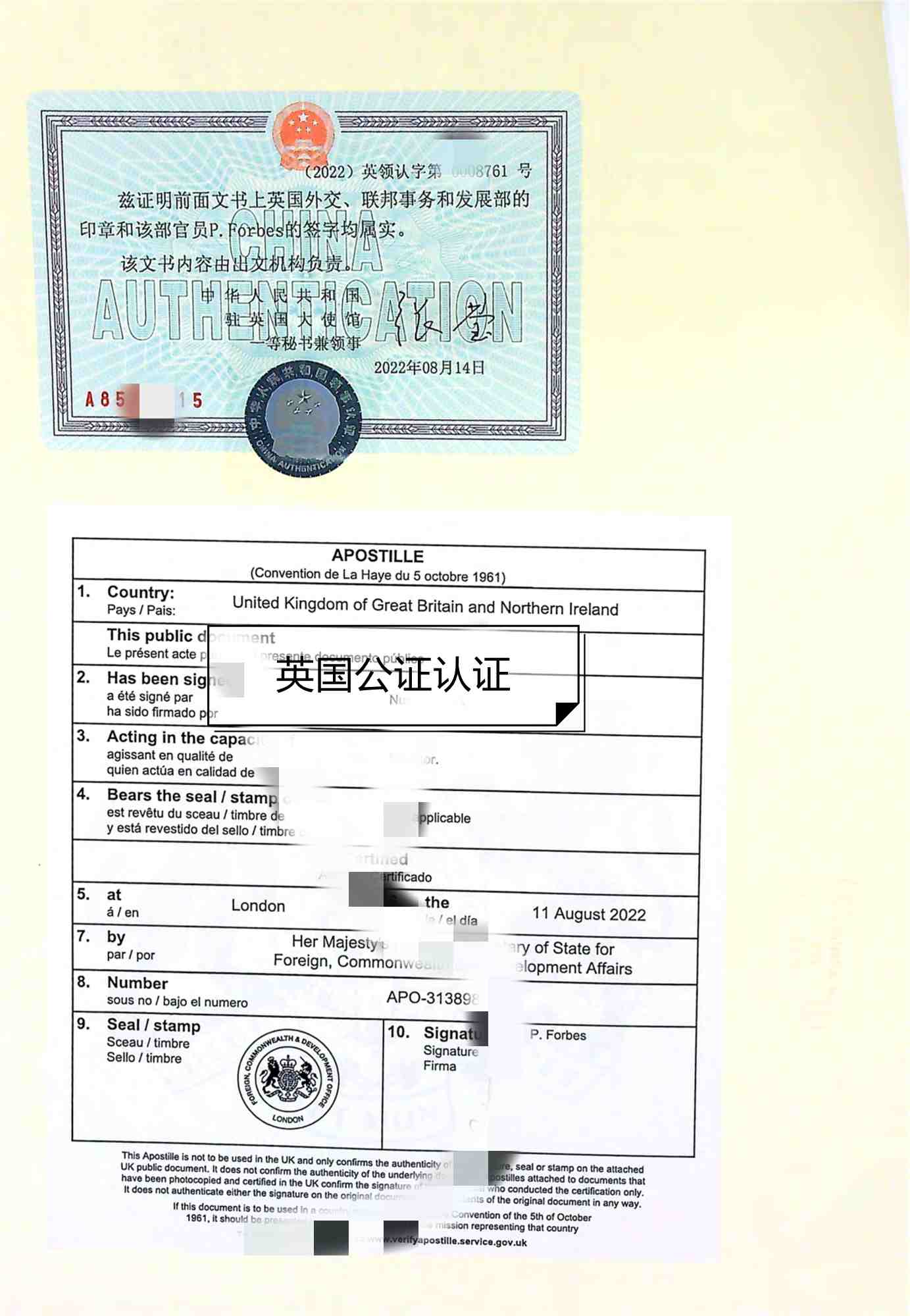 首先是國際律師公證,英國外交部對文件進行認(rèn)證,中國駐英國大使館認(rèn)證